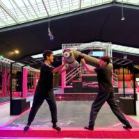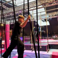 Zwischendurch versuchten einige sogar kleine Tricks, etwa Saltos oder eigene ausgedachte Sprünge. Das Highlight der Halle war aber das Trapez in der Mitte, womit man durch die Luft fliegen konnte und sich anschließend in einen weichen Airbag fallen lassen konnte.