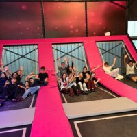 Da die beiden Gruppen bereits seit dem vergangenen Schuljahr zusammenarbeiten, kennen sich alle Kinder und verstehen sich gut. Bei der Sammlung der Projektideen hatte sich der Besuch im Trampolin-Park ganz oben auf der Ausflugsliste der Jugendlichen einen Platz gesichert.